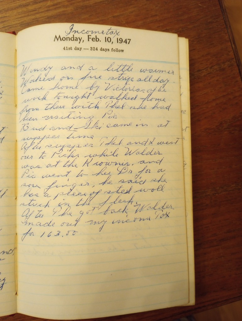 After he got back Walder made out my income tax for $163.00..