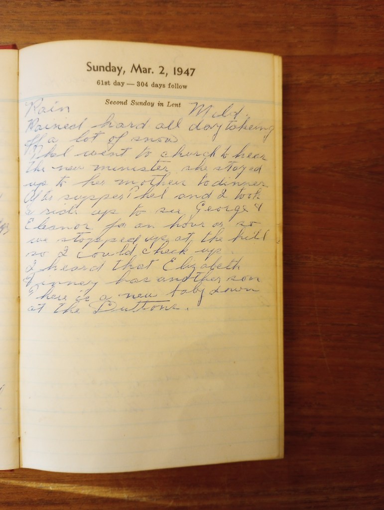 Thel went to church to hear the new minister. She stayed up to her mother’s to dinner.
