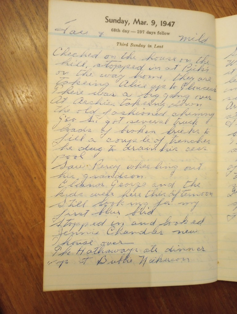 There was a big gang over at Archie’s taking down the old fashioned chimney. George S. got several truck loads of broken bricks to fill a couple of trenches he dug to drain his cesspool.