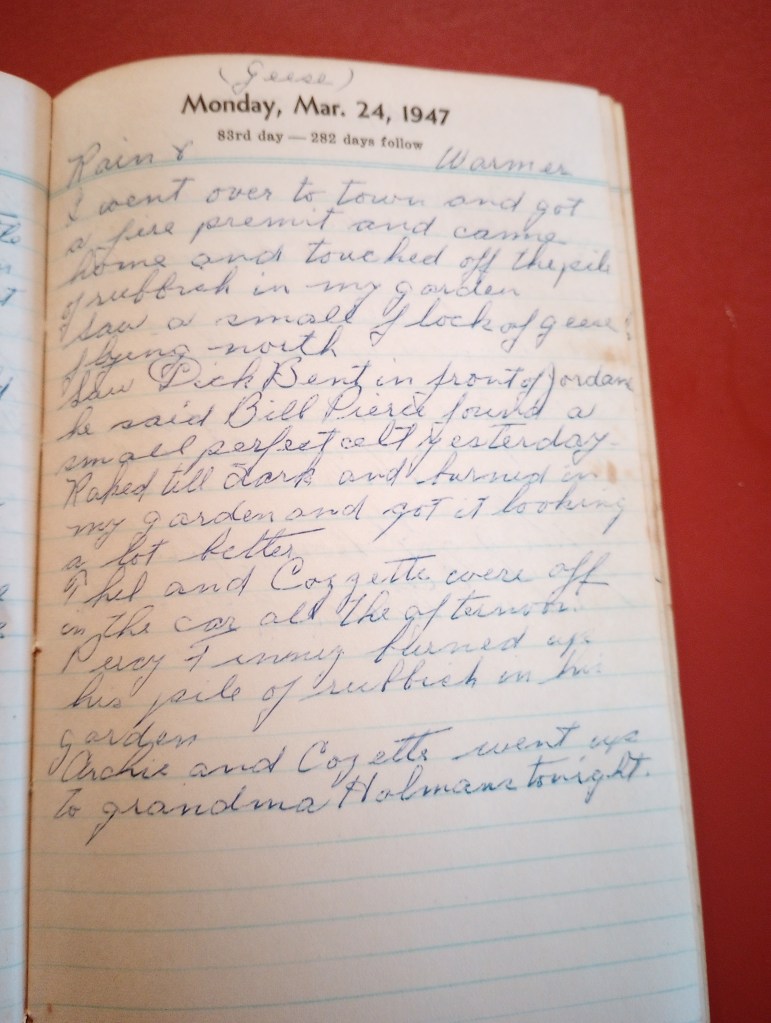 Saw Dick Bent in front of Jordan’s. He said Bill Pierce found a small perfect celt yesterday.