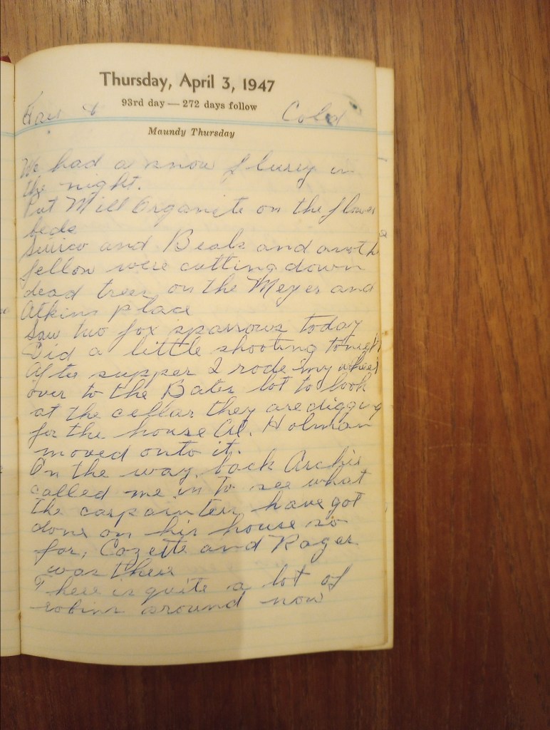 After supper I rode my wheel over to the Bateās lot to look at the cellar they are digging for the house Al Holman moved onto it.