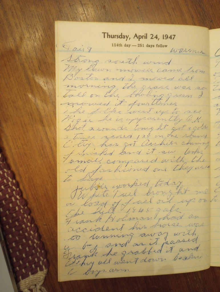 My lawn mowers came from Boston and I mowed all morning. The grass was so tall on the bowling green I had mowed it four times.