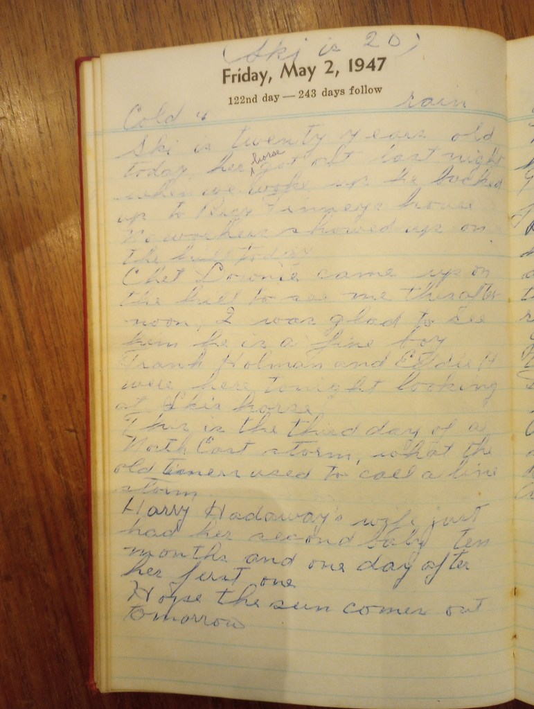 Ski is twenty years old today.  Her horse got out last night. When we woke up he [was] back up to Percy Finney’s house.