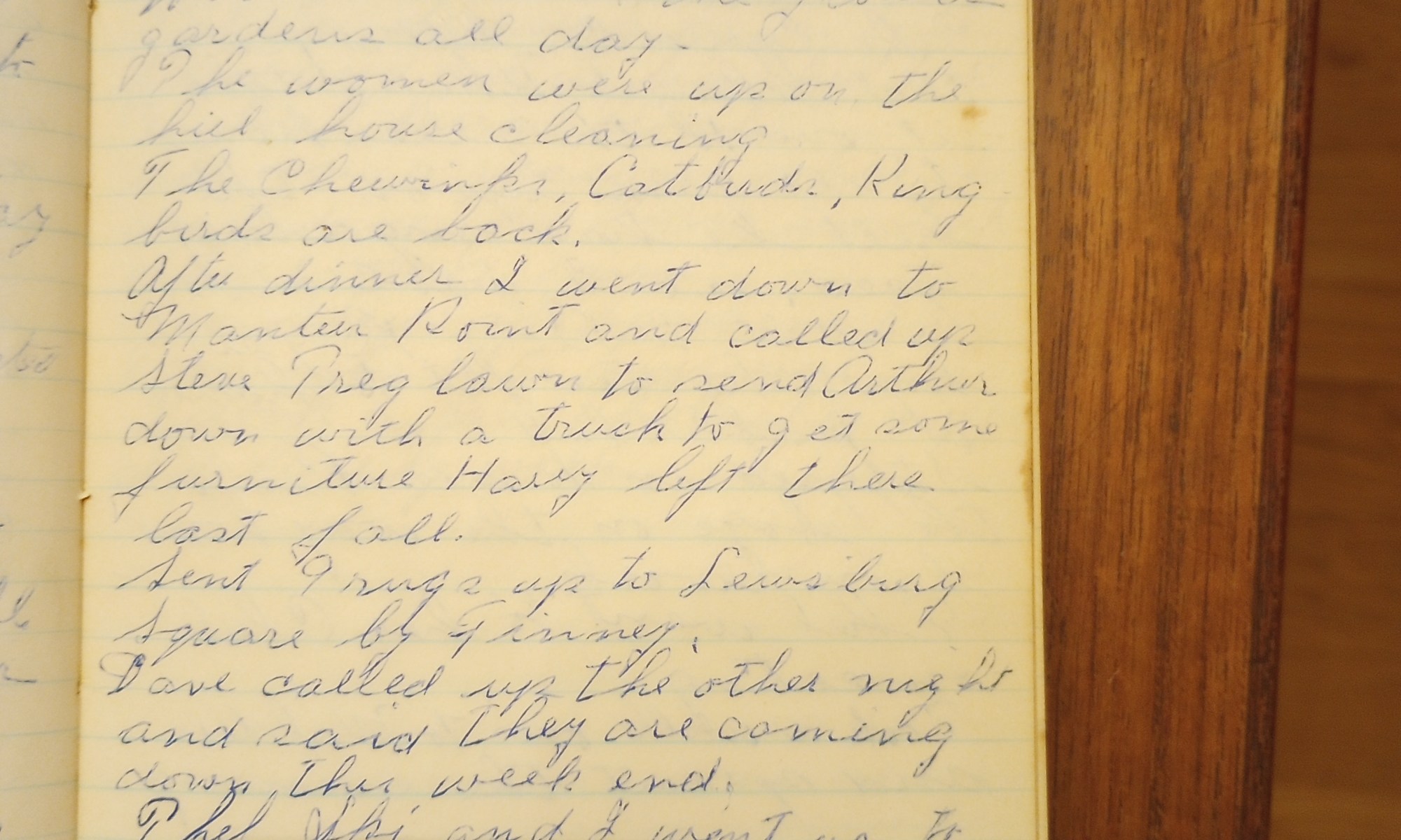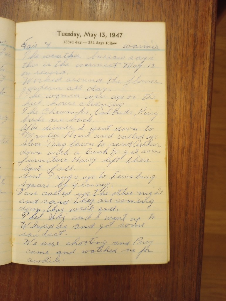 After dinner I went down to Manter’s Point and called up Steve Treglawn to send Arthur down with a truck to get some furniture Harry left there last Fall.