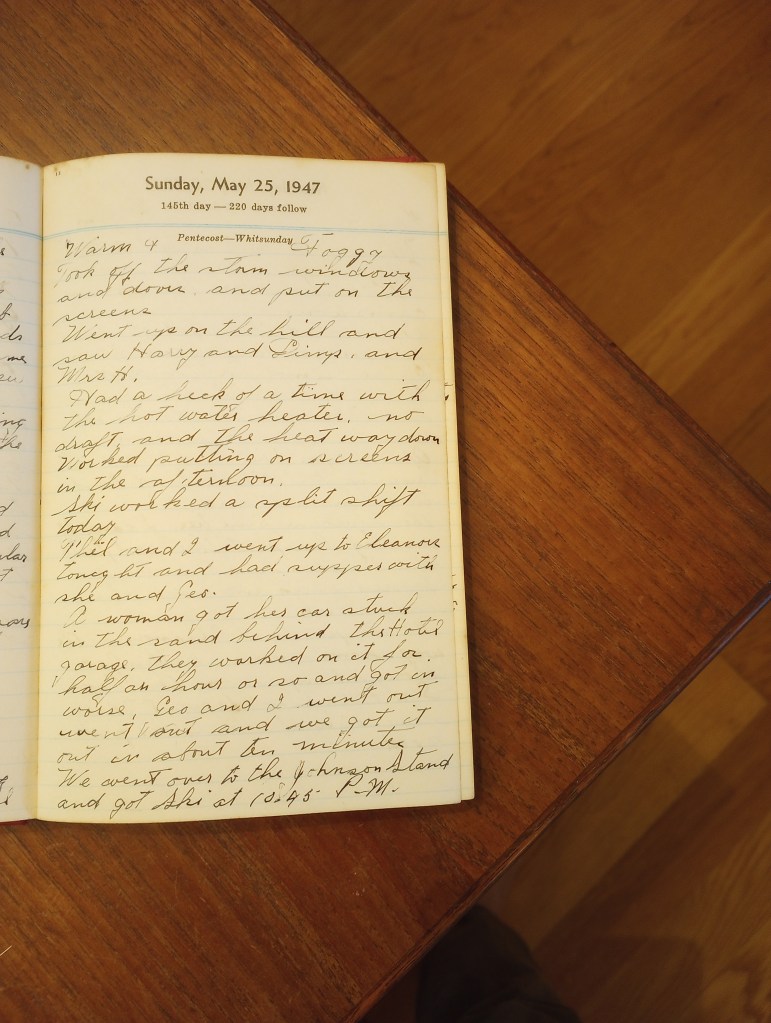 A woman got her car stuck in the sand behind the Hotel garage. They worked on it for half an hour or so and got in worse. Geo. and I went out and we got it out in about ten minutes.