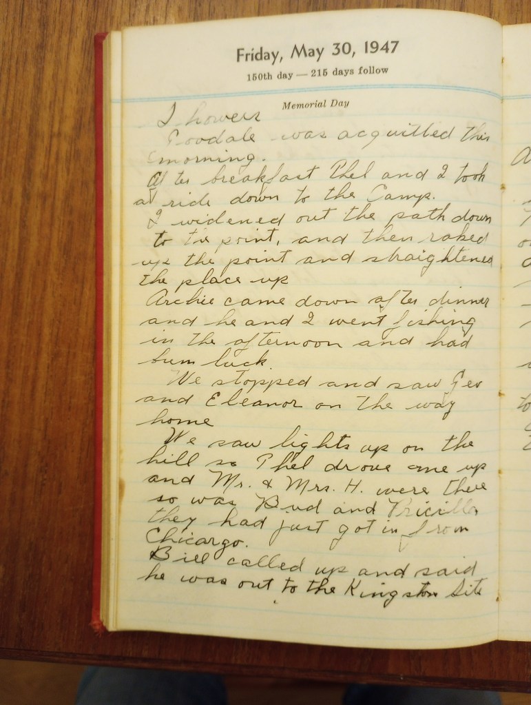 We saw lights up on the hill so Thel drove me up and Mr. and Mrs. H. were there so was Bud and Priscilla. They had just got in from Chicago.