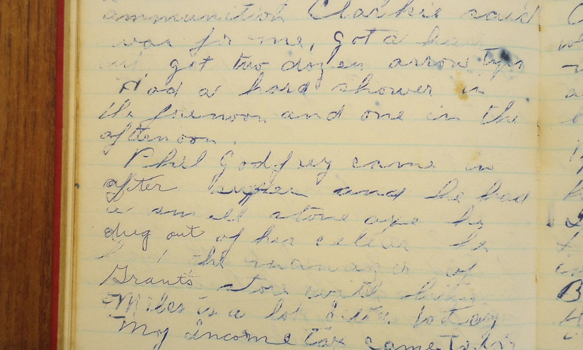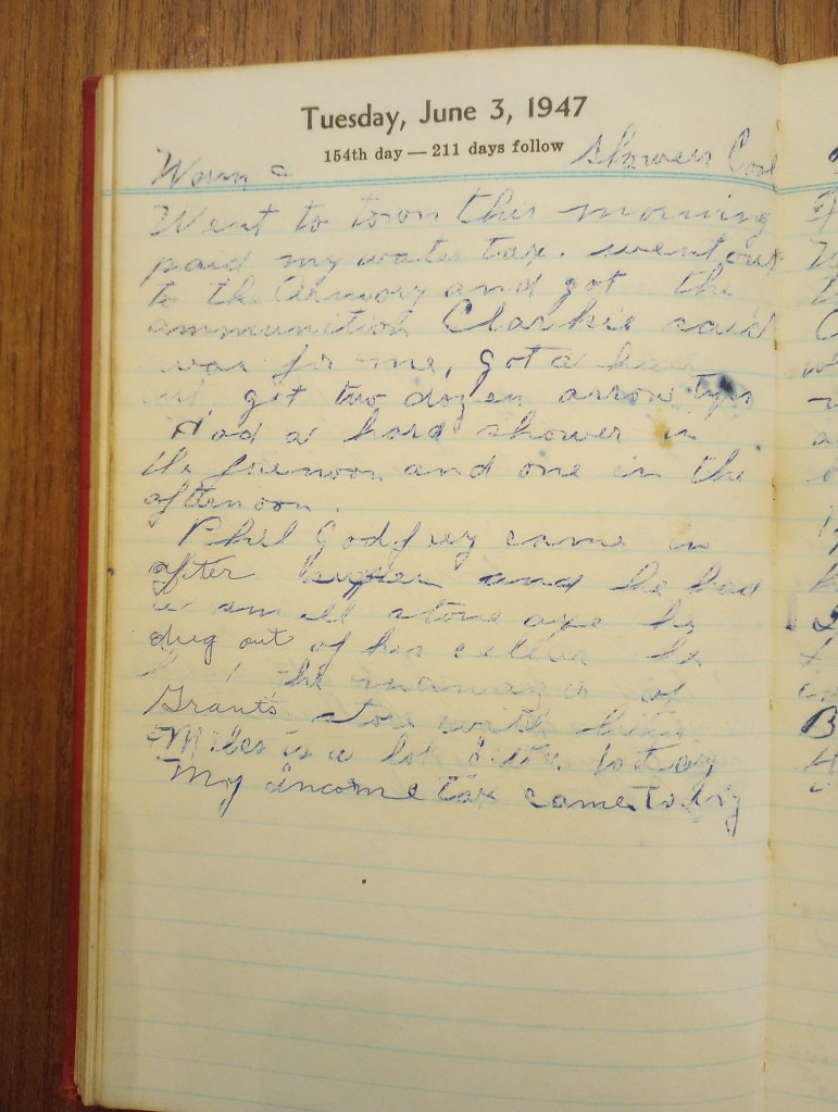 Went to town this morning, paid my water tax. Went out to the Armory and got the ammunition Clarkie said was for me. Got a hair cut. I got two dozen arrow tips