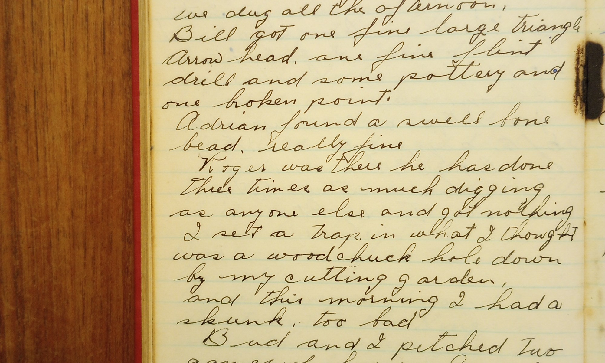 Bill got one fine large triangle arrowhead, one fine flint drill, and some pottery and one broken point.