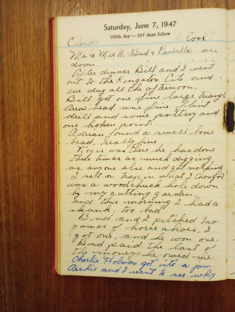After dinner Bill and I went out to the Kingston site and we dug all the afternoon.