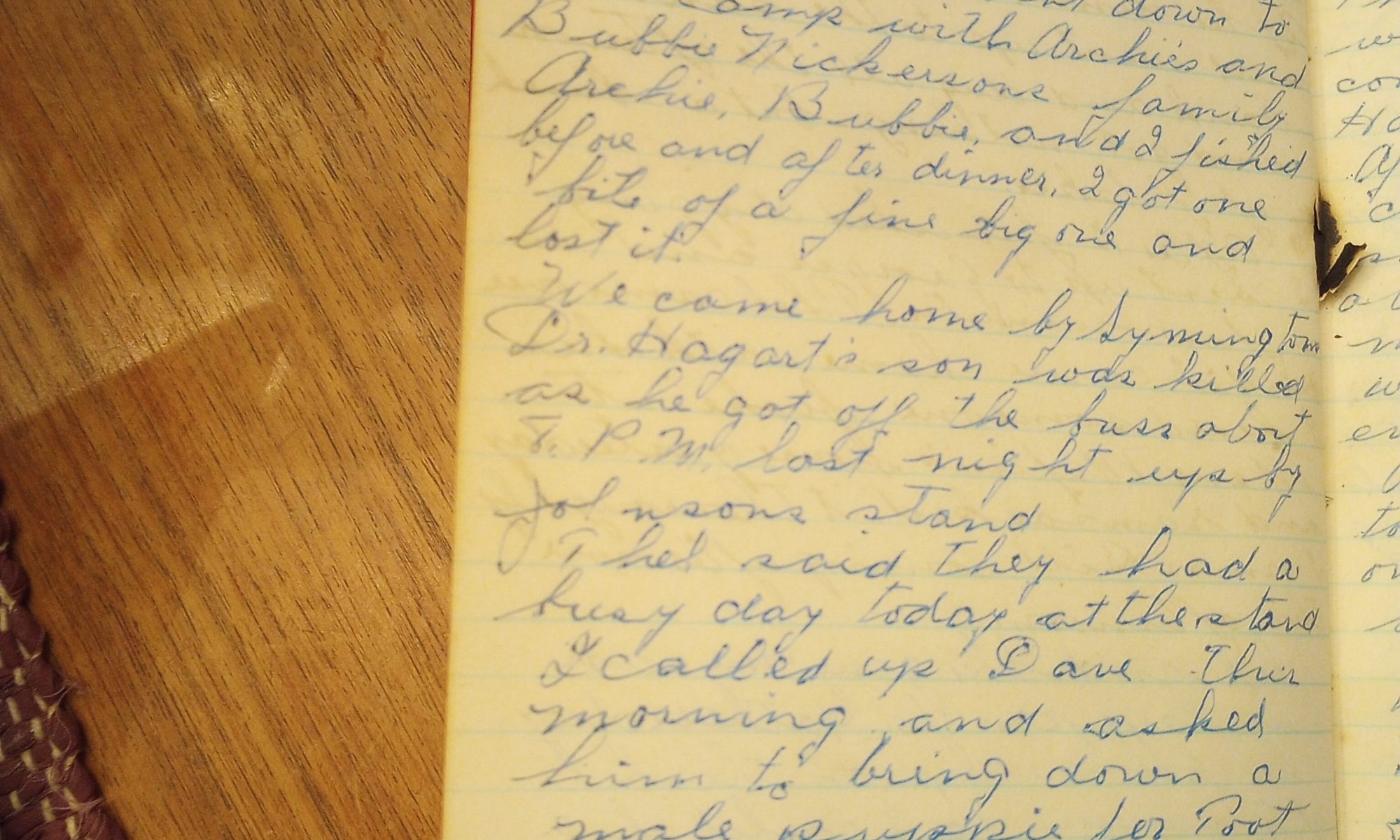 This A.M. I went down to the camp with Archie’s and Bubbie Nickerson’s family. Archie, Bubbie, and I fished before and after dinner. I got one bit of a fine big one and lost it.