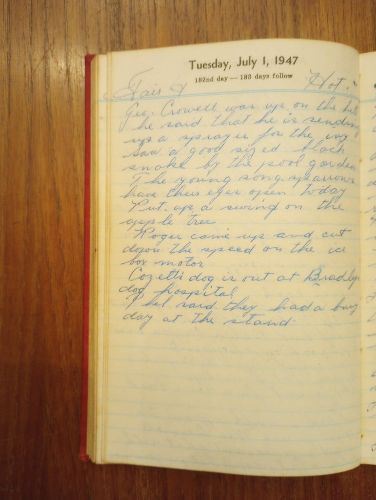 Geo. Crowell was up on the hill. He said that he is sending up a sprayer for the ivy.