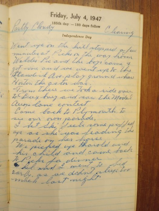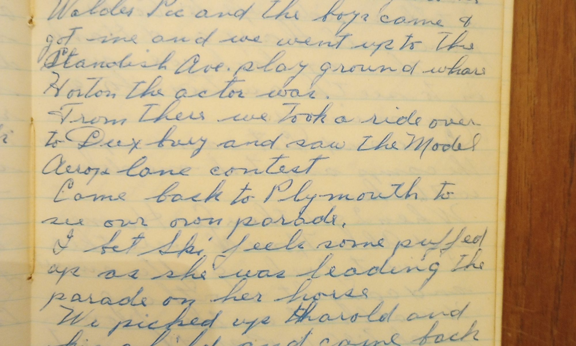 Went up on the hill, stopped a few minutes at Pic’s on the way home. Walder, Pic and the boys came + got me and we went up to the Standish Ave. playground where Horton the actor was.