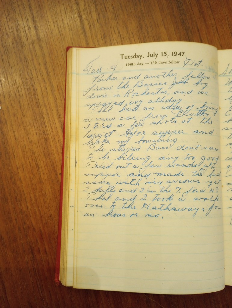 Tried out a few rounds after supper and made the best score with six arrows yet., 3 bulls and 3 in the 7 for a 48.