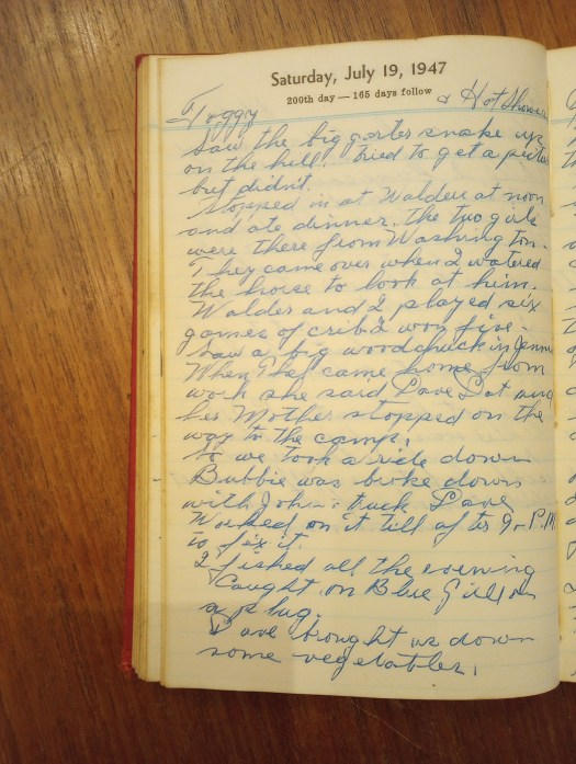 Stopped in at Walder’s at noon and ate dinner. The two girls were there from Washington. They came over when I watered the horse to look at him.
