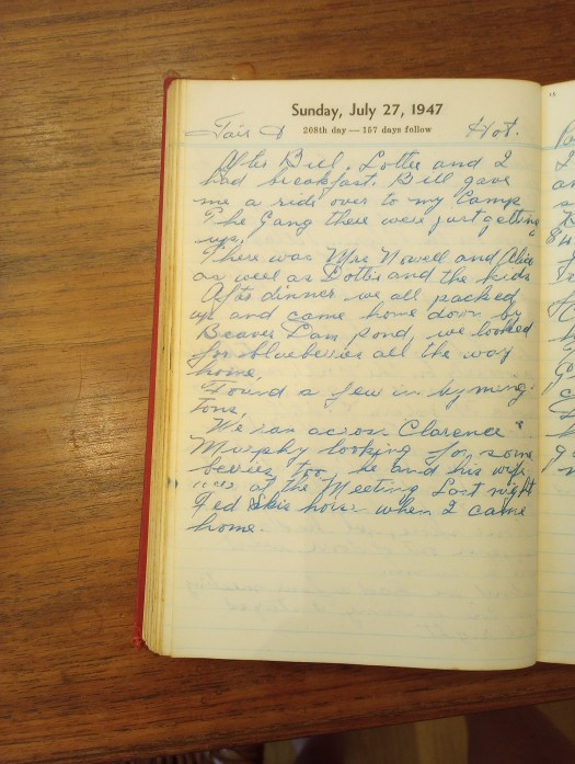 After dinner we all packed up and came home down by Beaver Dam Pond. We looked for blueberries all the way home. Found a few in Symington’s.