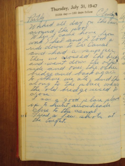 When I came home from work Thel and I took a ride down to the Canal and had supper, then we crossed the bridge and went down the other side and over the other bridge and back again to where we ate, and then along to the place where the old bridge used to cross.