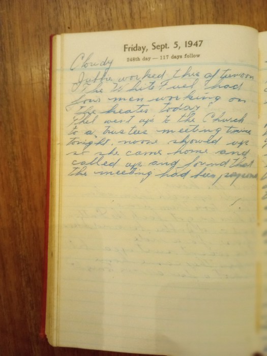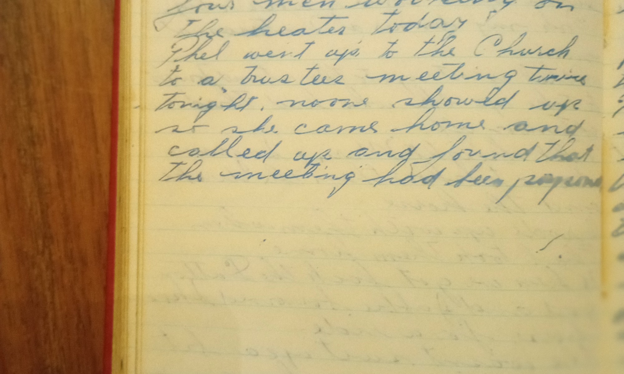 Thel went up to the church to a trustees meeting twice tonight. No one showed up, so she came home and called up and found that the meeting had been postponed.