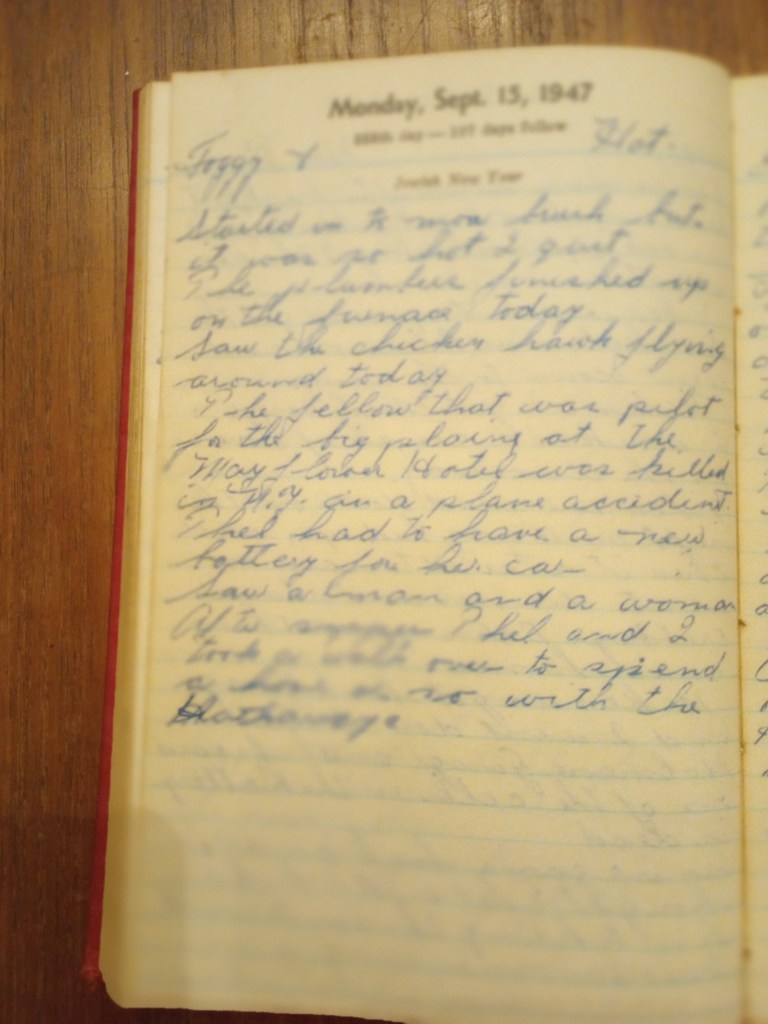 The fellow that was pilot for the big plane at the Mayflower Hotel was killed in N.Y. in a plane accident.