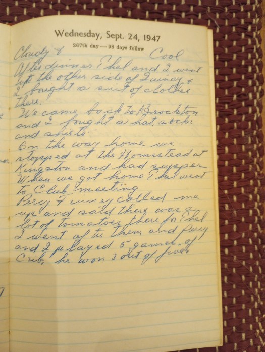 Percy Finney called me up and said there was a lot of tomatoes there for Thel. I went after them and Percy and I played 5 games of crib. He won 3 out of five.