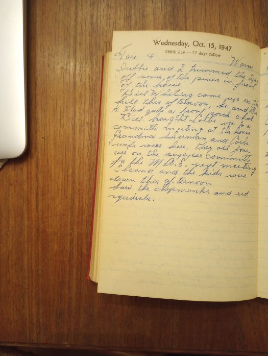 Bill brought Lottie up to a committee meeting at the house. Grandma Sherman and Carl’s wife were here. They all four were on the supper committee for the M.A.S. next meeting.