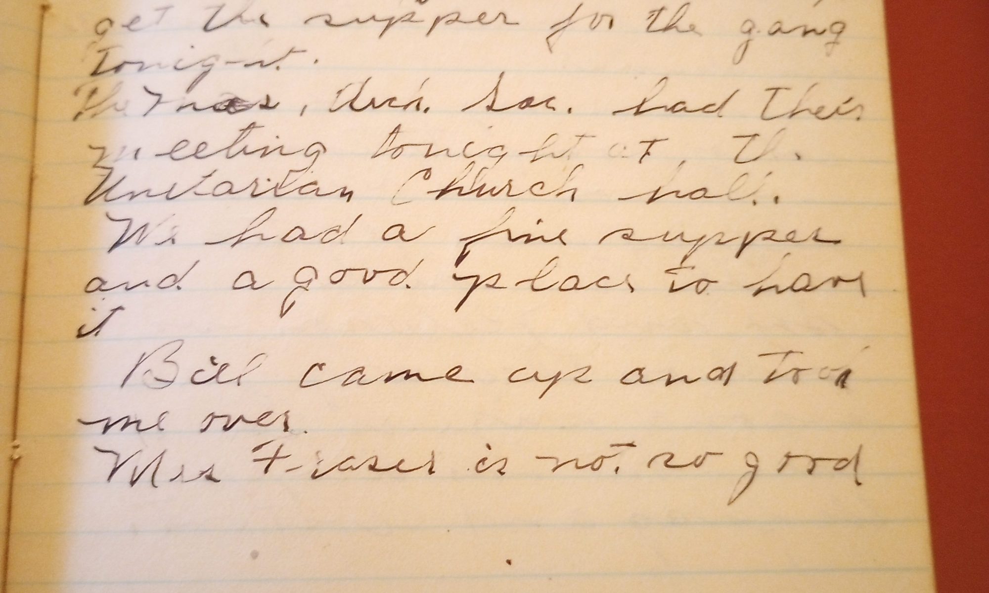 Thel went over to the Unitarian Church this afternoon to help get the supper for the gang tonight.