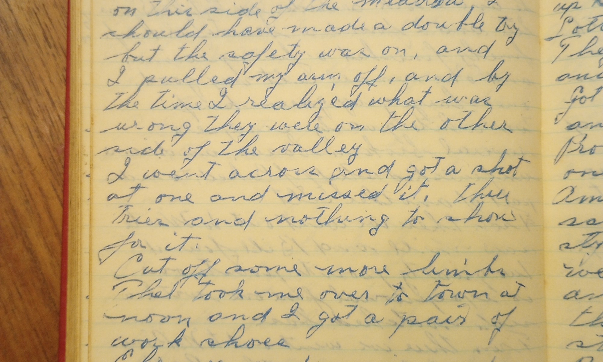 When I started to work this A.M. I scared up two cock pheasants on this side of the meadow. I should have made a double try but the safety was on, and I pulled my arm off, and by the time I realized what was wrong they were on the other side of the valley.
