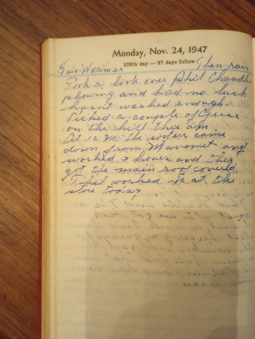 At 12 P.M. the roofer came down from Manomet and worked 3 hours and they got the main roof covered.