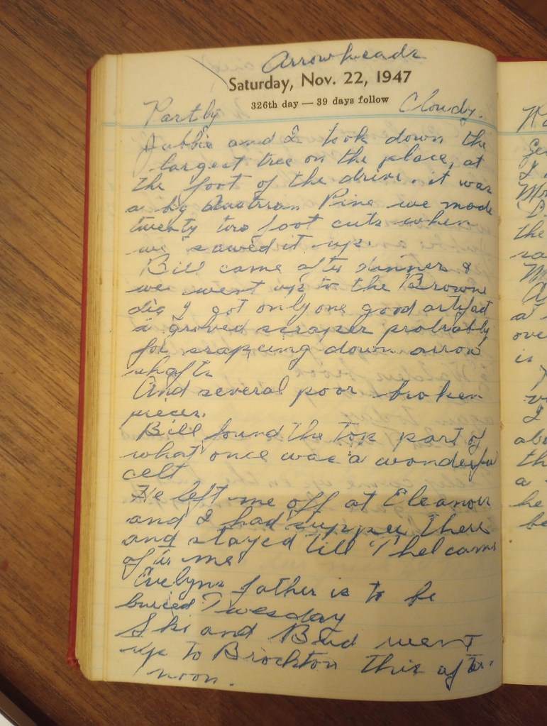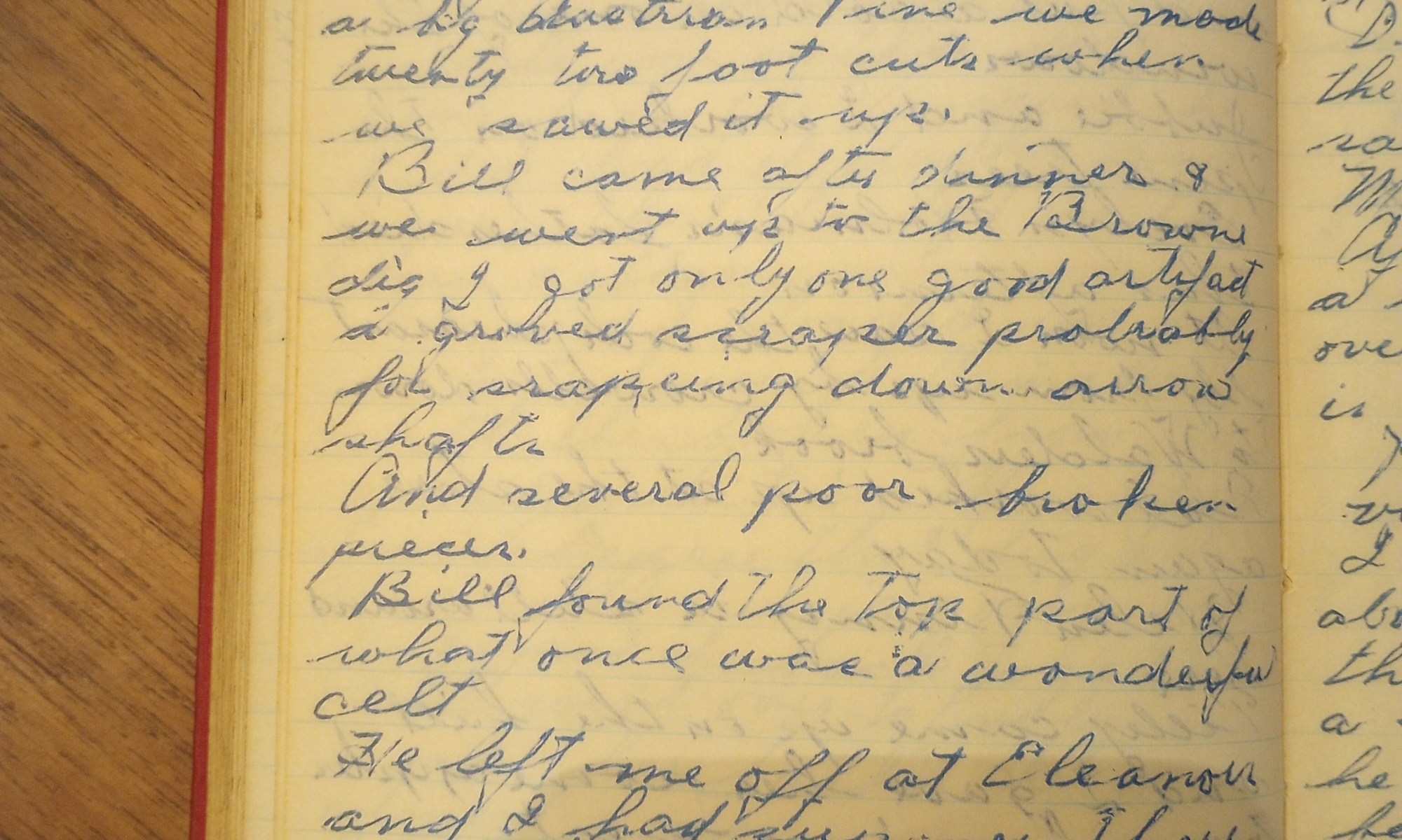 Bill came after dinner + we went up to the Browne dig. I got only one good artifact, a grooved scraper probably for scraping down arrow shafts.