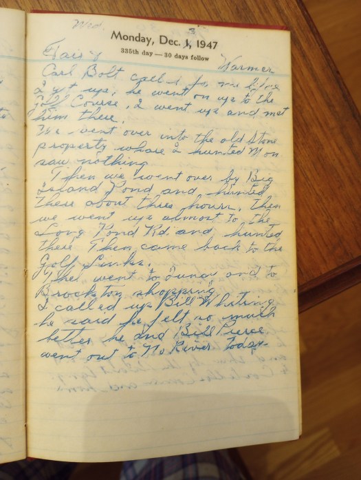 Met up with six other hunters. Checked up at night and none of us had seen a deer. Saw some partridges at Stone’s dump eating sweet briar, berries. Two of them flew up on a birch lim so close together I could have got both with one shot, but was more interested in watching their antics and listening to their chatter.