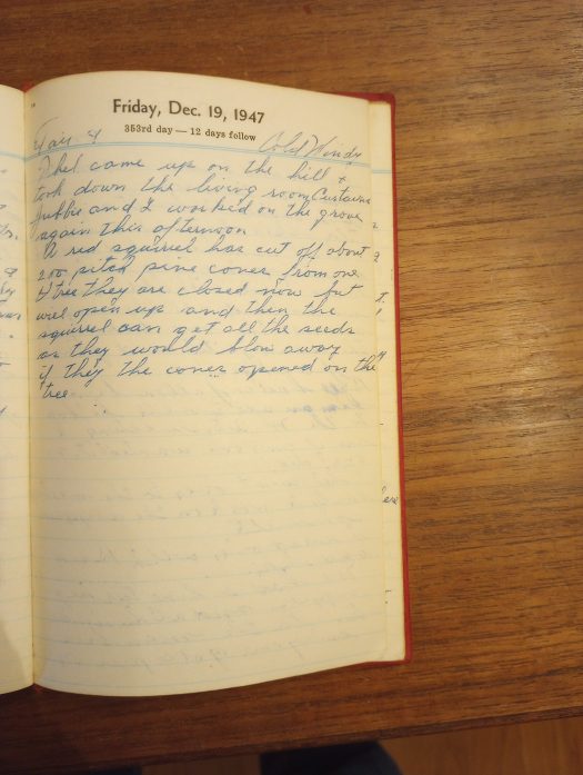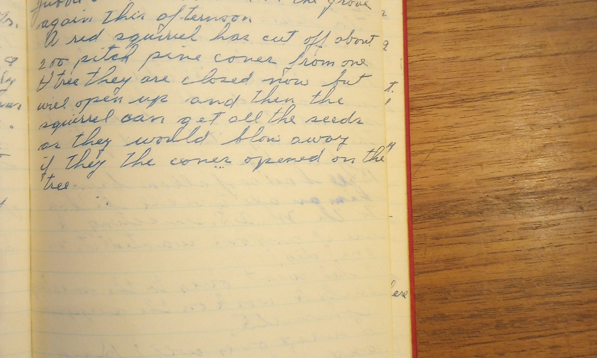 A red squirrel has cut off about 200 pitch pine cones from one tree. They are closed now but will open up and then the squirrel can get all the seeds as they would blow away if the cones opened on the tree.