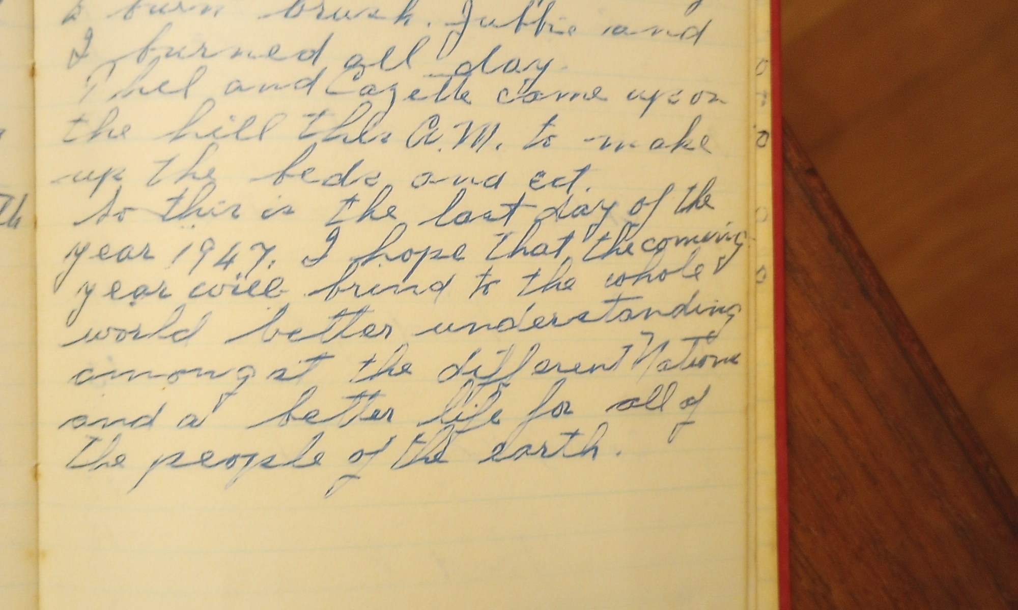 So this is the last day of the year 1947. I hope that the coming year will bring to the whole world better understanding amongst the different nations and a better life for all of the people of the earth.