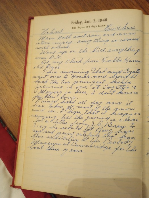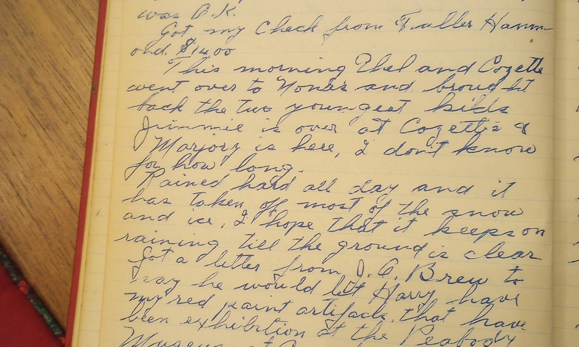 Got a letter from J. A. Brew to say he would let Harry have my red paint artifacts that have been [on] exhibition at the Peabody Museum at Cambridge for the last three years.
