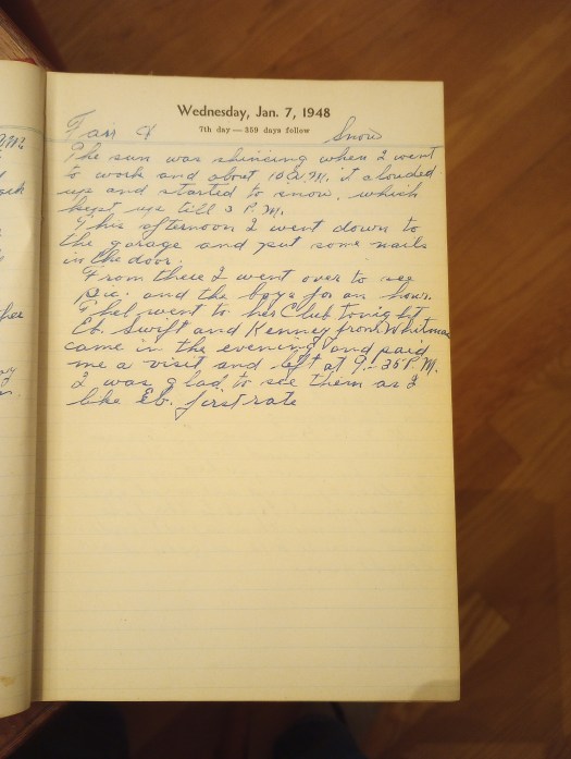 The sun was shining when I went to work and about 10 A.M. it clouded up and started to snow, which kept up till 3 P.M.