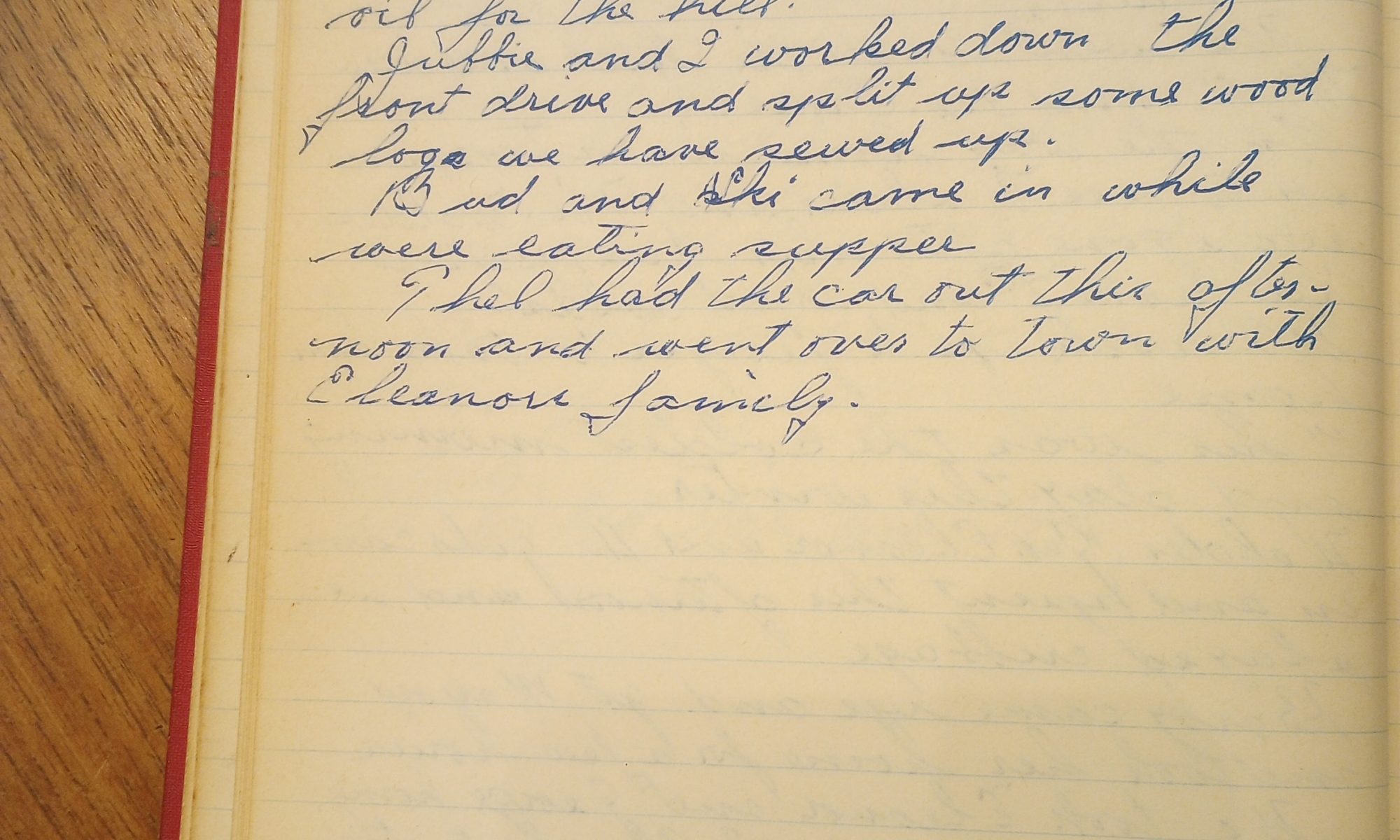 Thel had the car out this afternoon and went over to town with Eleanor’s family.