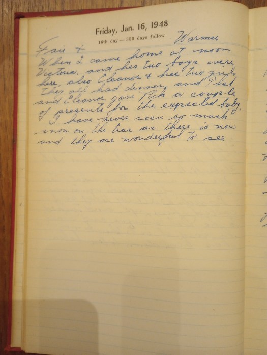 When I came home at noon Victoria and her two boys were here, also Eleanor and her two girls. They all had dinner and Thel and Eleanor gave Pick a couple of presents for the expected baby.