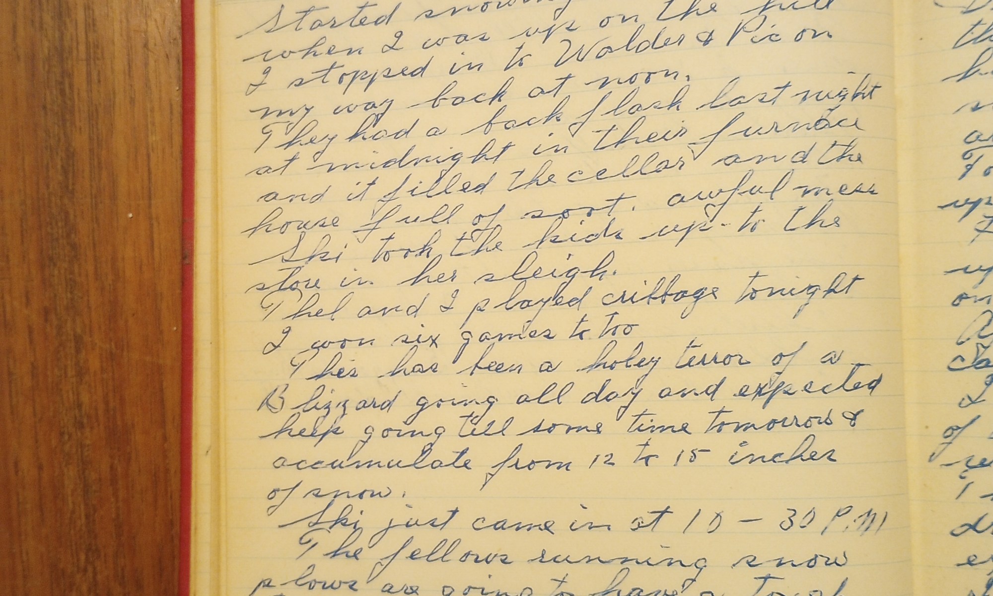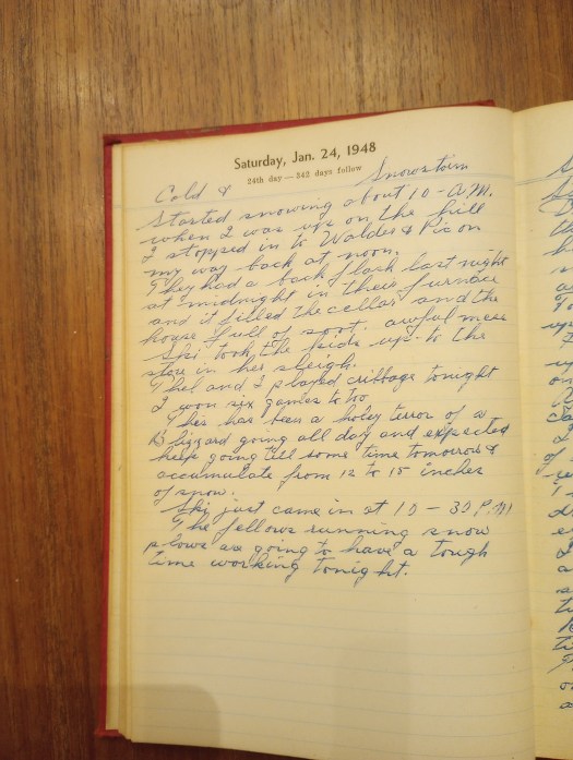 Started snowing about 10:00 A.M. when I was up on the hill. I stopped in to Walder and Pic’s on my way back at noon. They had a back flash last night at midnight in their furnace and it filled the cellar and the house full of soot. Awful mess.