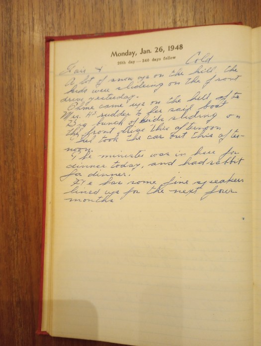The minister was in here for dinner today, and had rabbit for dinner.