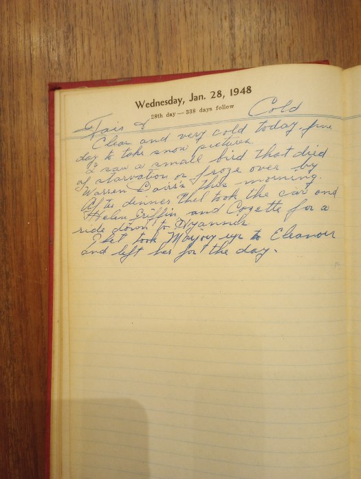 I saw a small bird that died of starvation or froze over by Warren Davis’s this morning.
