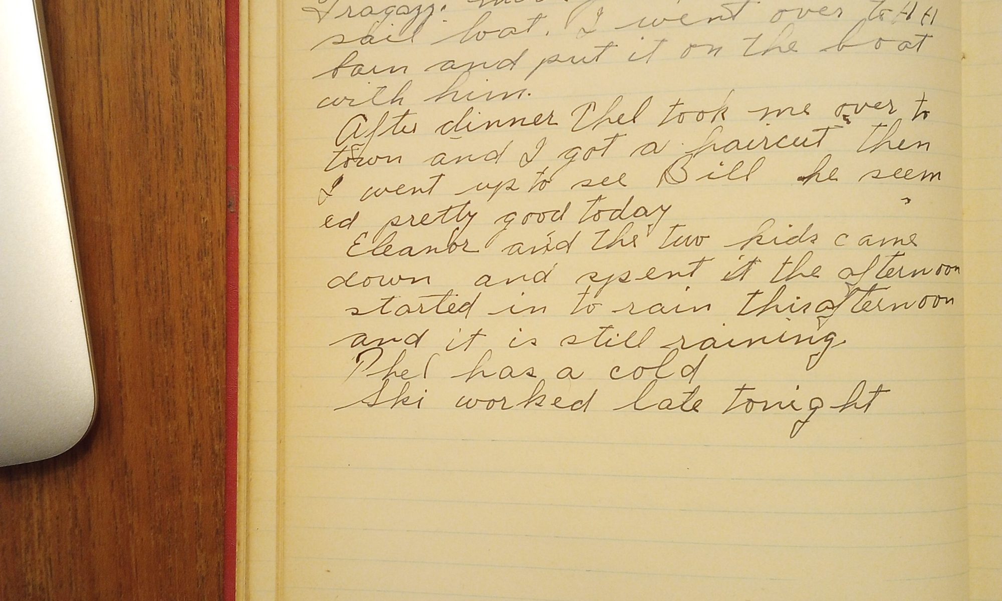 After dinner Thel took me over to town and I got a haircut, then I went up to see Bill. He seemed pretty good today.