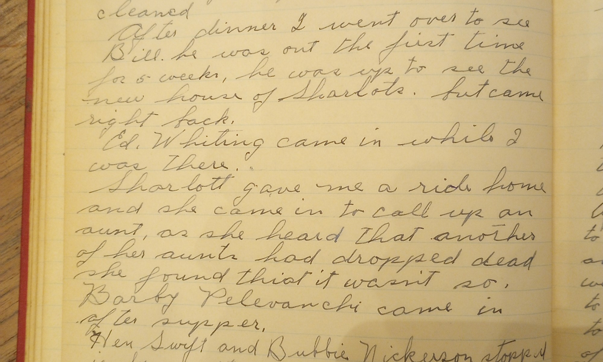 Sharlott gave me a ride home and she came in to call up an aunt, as she heard that another of her aunts had dropped dead. She found that it wasnāt so.