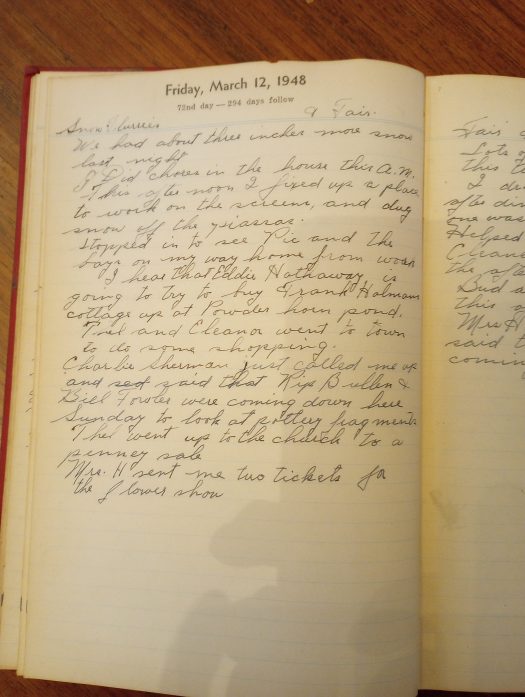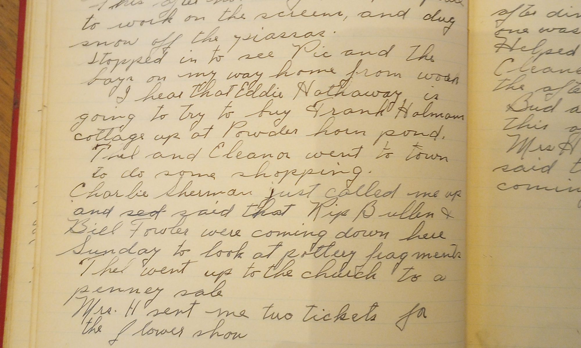 Charlie Sherman just called me up and said that Rip Bullen + Bill Fowler were coming down here Sunday to look at pottery fragments.