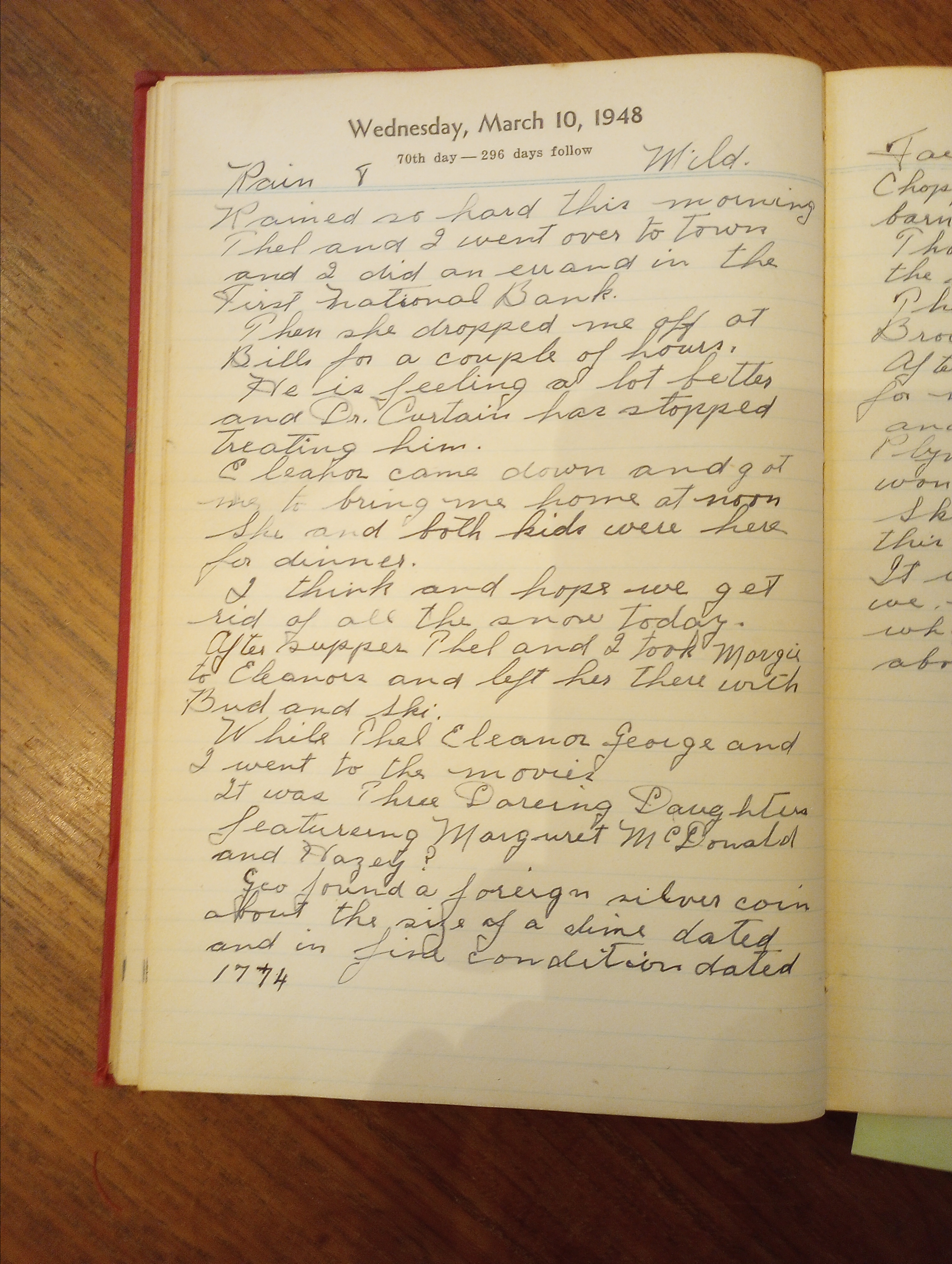 After supper Thel and I took Margie to Eleanor’s and left her there with Bud and Ski.