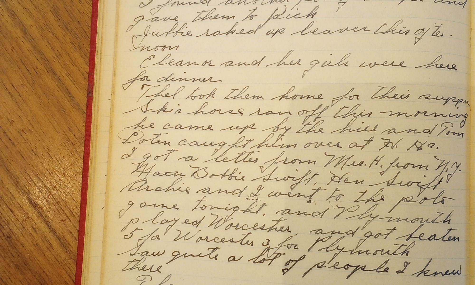 Bobbie Swift, Hen Swift, Archie and I went to the polo game tonight, and Plymouth played Worcester, and got beaten. 5 for Worcester 3 for Plymouth.