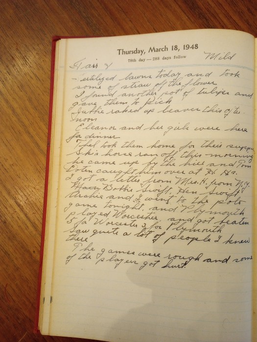 Ski’s horse ran off this morning. He came up by the hill and Tom Doten caught him over at H. H.’s.