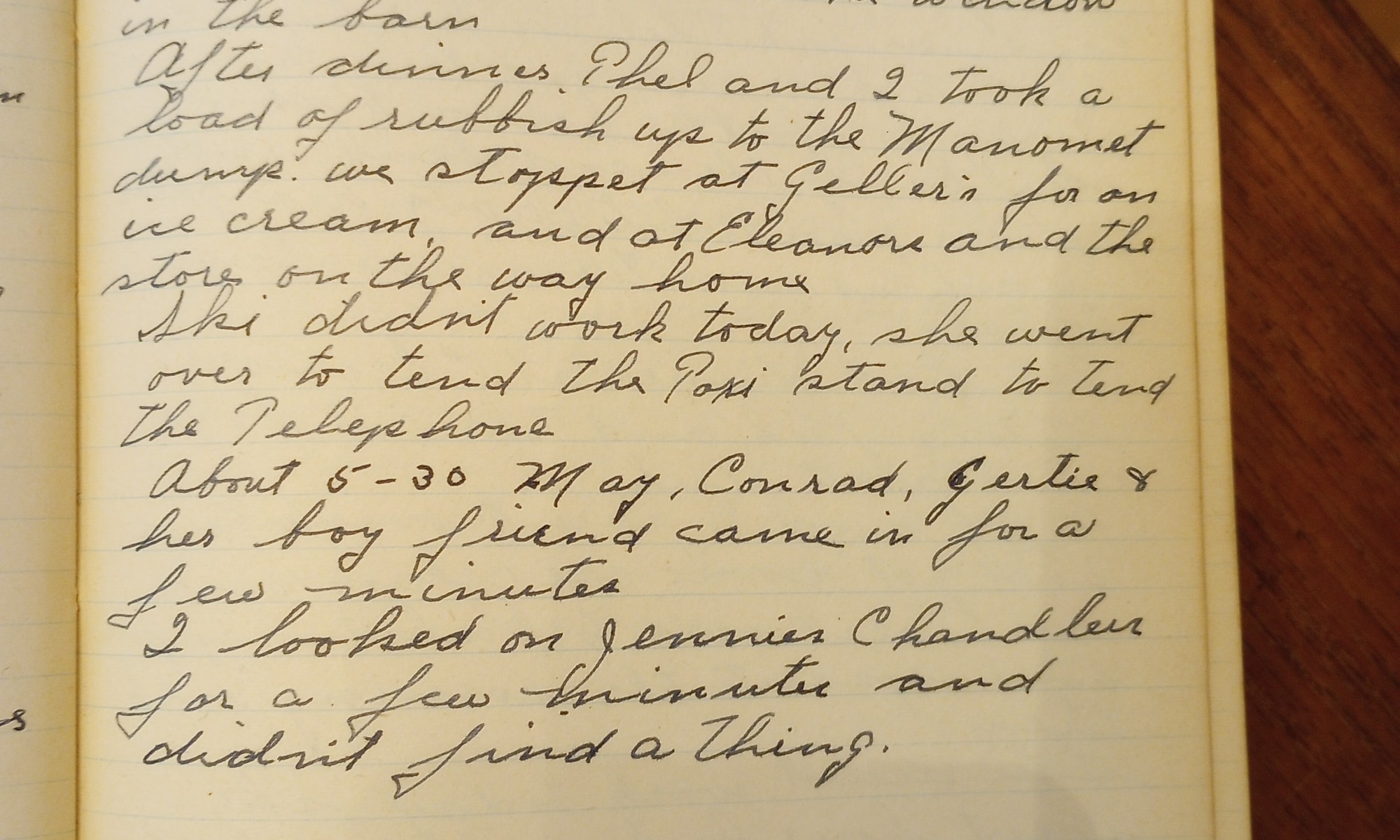 After dinner Thel and I took a load of rubbish up to the Manomet dump. We stopped at Gellar’s for an ice cream and at Eleanor’s and the store on the way home.