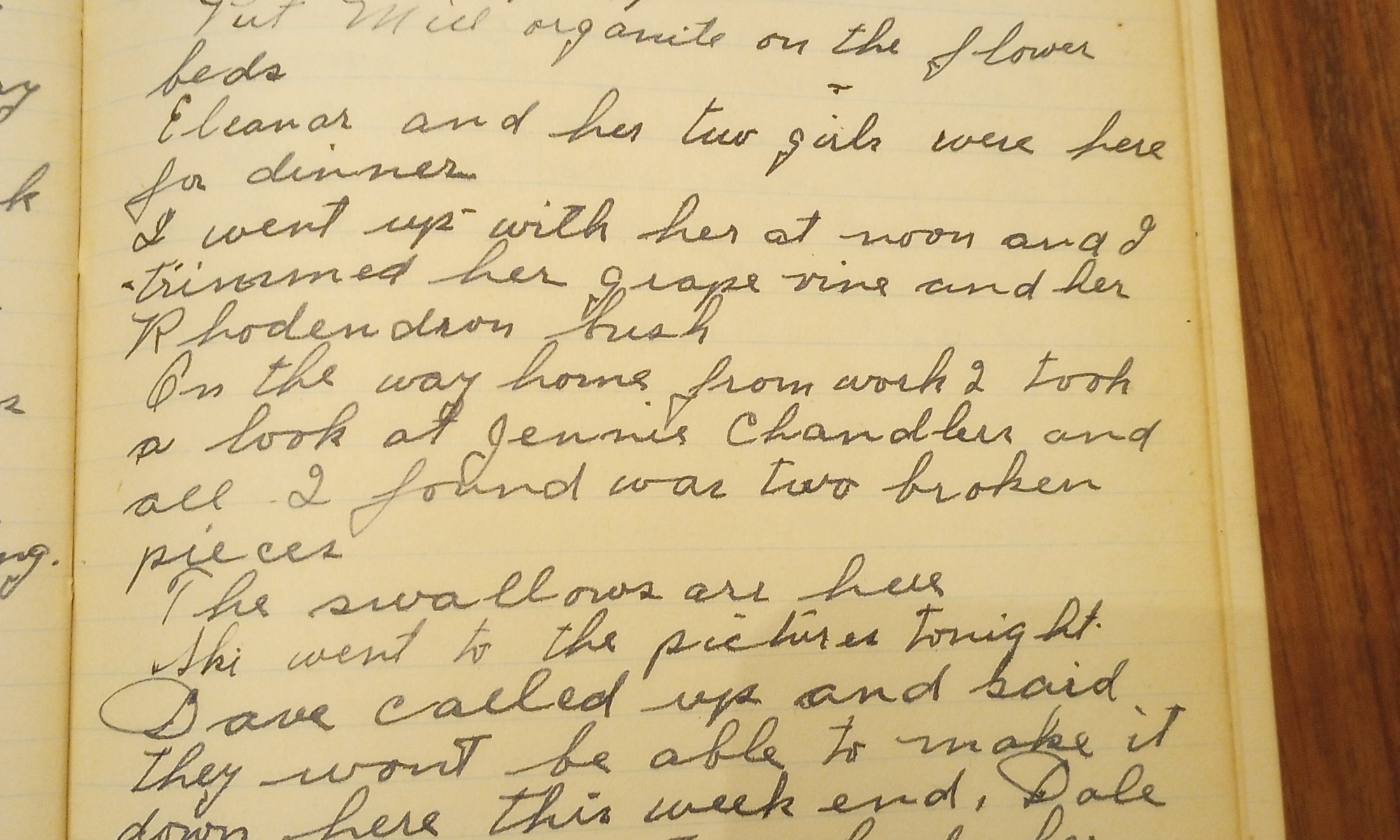 I went up with her at noon and I trimmed her grape vine and her Rhododendron bush.