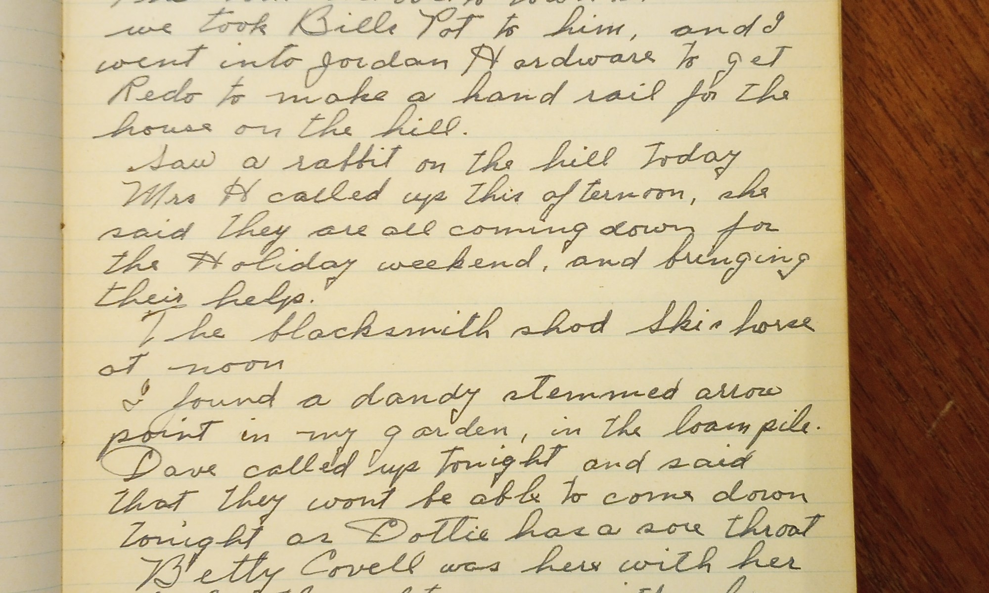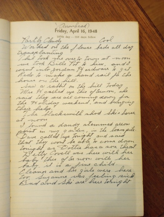 Thel took me over to town at noon. We took Bill’s pot to him, and I went into Jordan Hardware to get Redo to make a hand rail for the house on the hill.