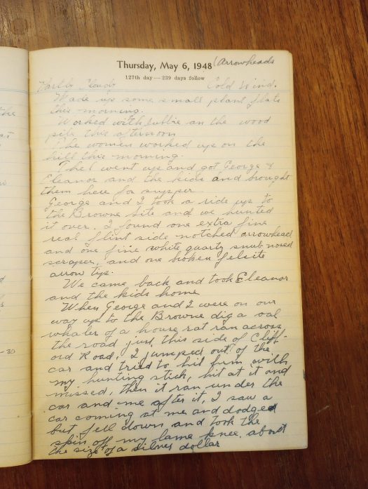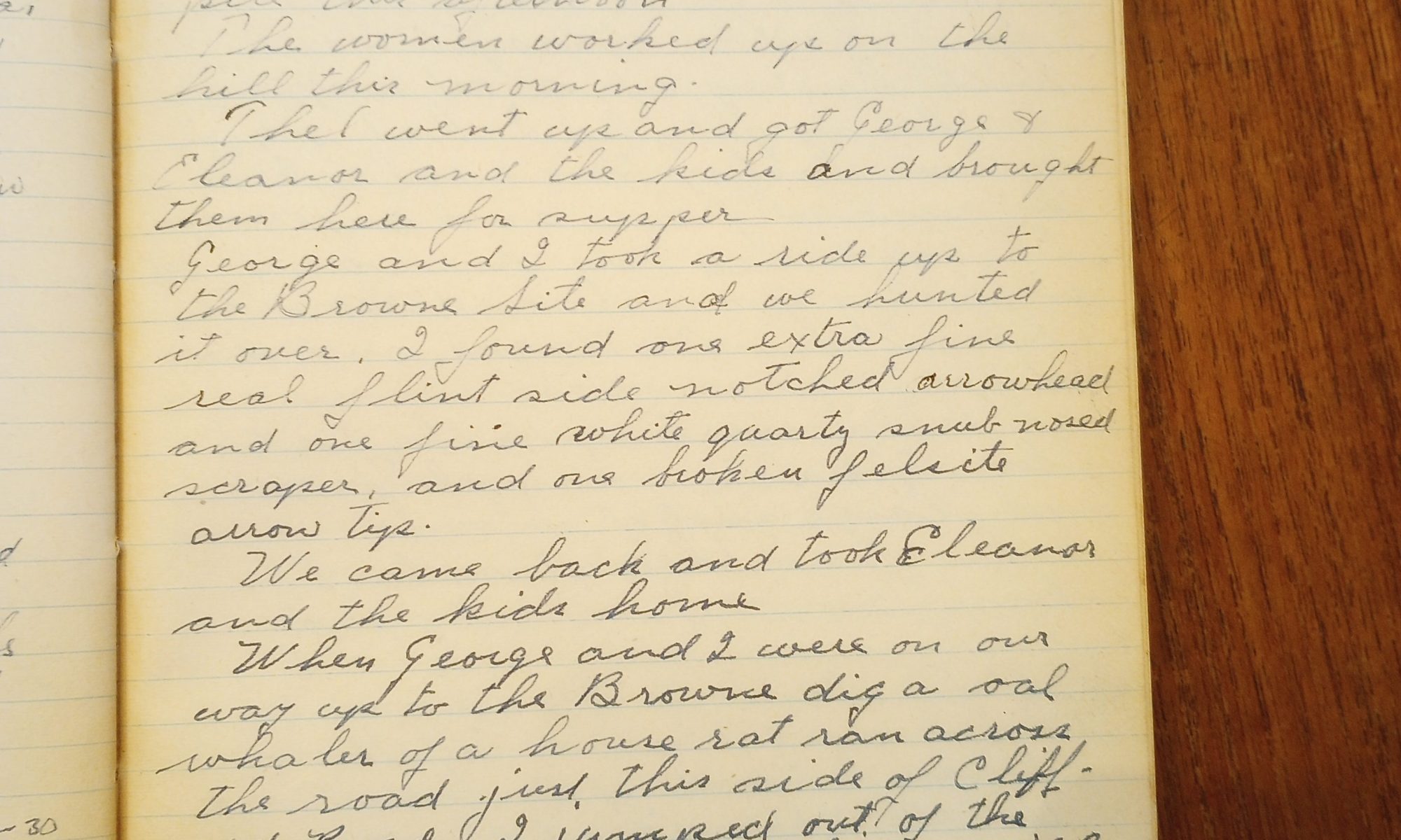 When George and I were on our way up to the Browne dig a [?] whaler of a house rat ran across the road just this side of Clifford Road. I jumped out of the car and tried to hit him with my hunting stick, hit at it and missed, then it ran under the car and me after it. I saw a car coming at me and dodged but fell down and took the skin off my lame knee, about the size of a silver dollar. .