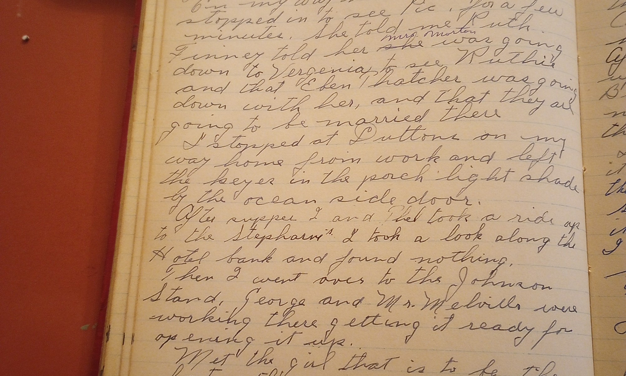 On my way home tonight I stopped in to see Pic for a few minutes. She told me Ruth Finney told her Mrs. Morton was going down to Virginia to see Ruthie and that Eben Thatcher was going down with her, and that they are going to be married there.