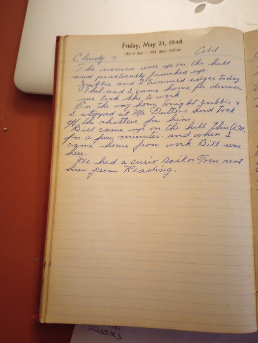 On the way home tonight Jubbie + I stopped at Mr. Dutton’s and took off the shutters for him.